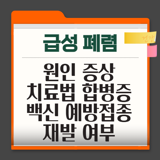 지금까지 급성 폐렴의 원인, 증상, 치료법, 합병증, 치료법, 예방 접종, 재발 가능성 등에 대해 정리해보았습니다. 급성 폐렴은 흔하지만 위험할 수 있는 질병으로, 신속한 치료가 매우 중요한 질병입니다. 예방접종과 생활 습관 관리를 통해 폐렴 위험을 줄이는 것이 중요하겠네요.