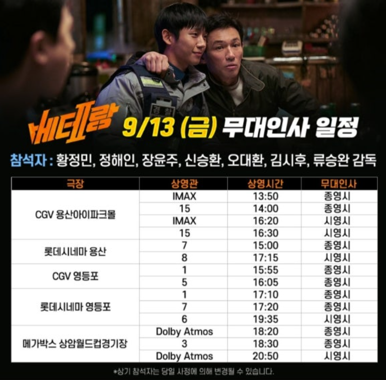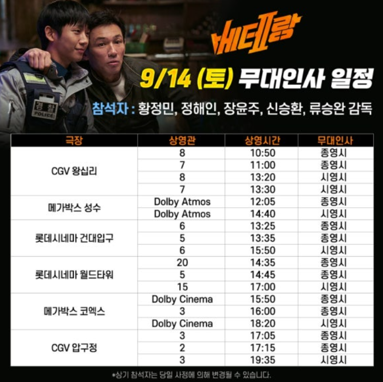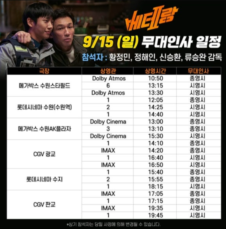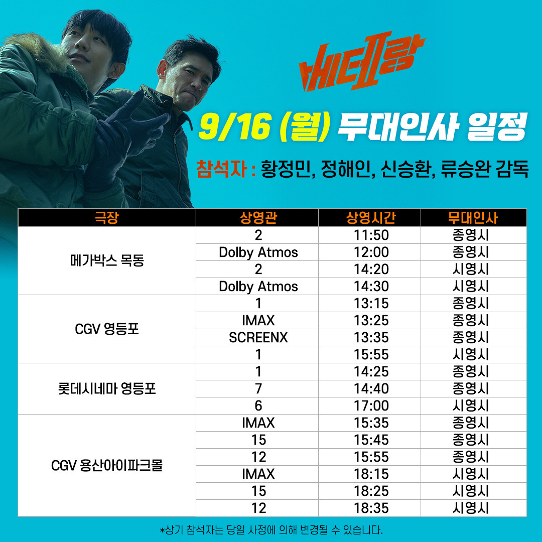 👉 추석 연휴 중 <베테랑2>의 무대인사는 9월 13일~18일까지 매일!