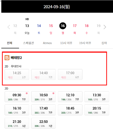 벌써부터 매진된 시간이 많으니 빠른 예매 도전이 중요!