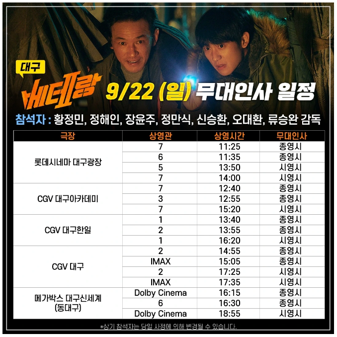 👉 9월 22일(일)에는 대구에서 무대인사가 진행됩니다.