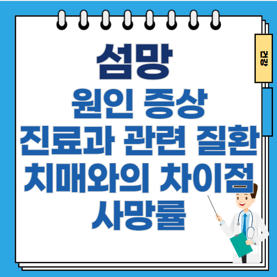 섬망은 응급상황으로 간주되며 장기화되면 인지 기능이 영구적으로 저하될 위험이 있는 중대 질환입니다. 이번 글에서는 섬망의 원인, 증상, 치매와의 차이, 진단, 진료과, 관련 질환, 사망률에 대해 정리해보겠습니다.